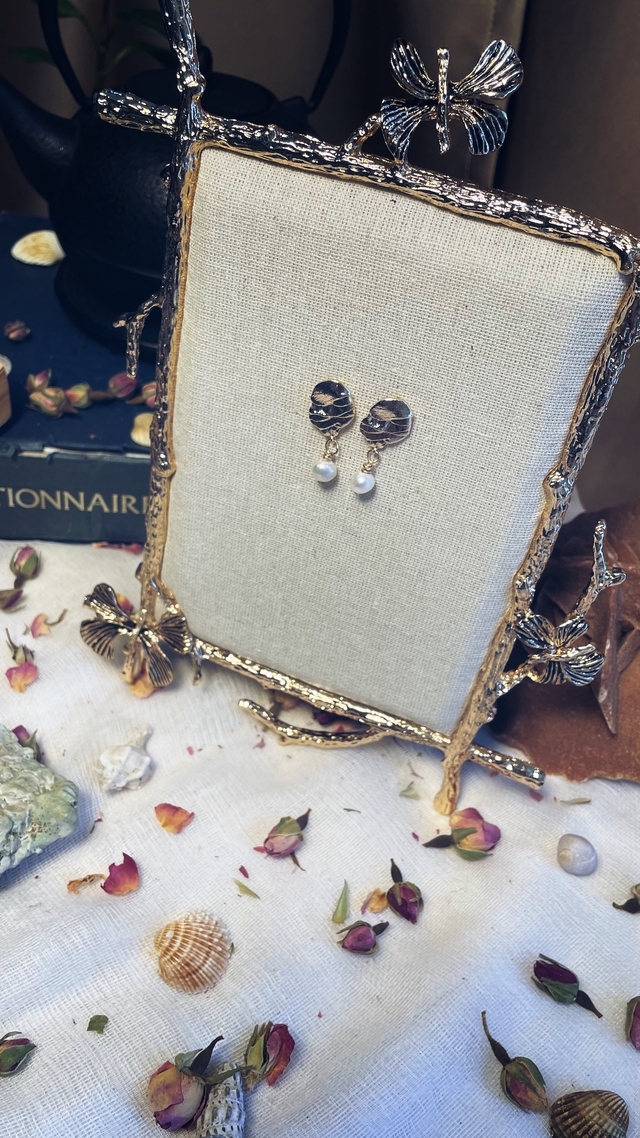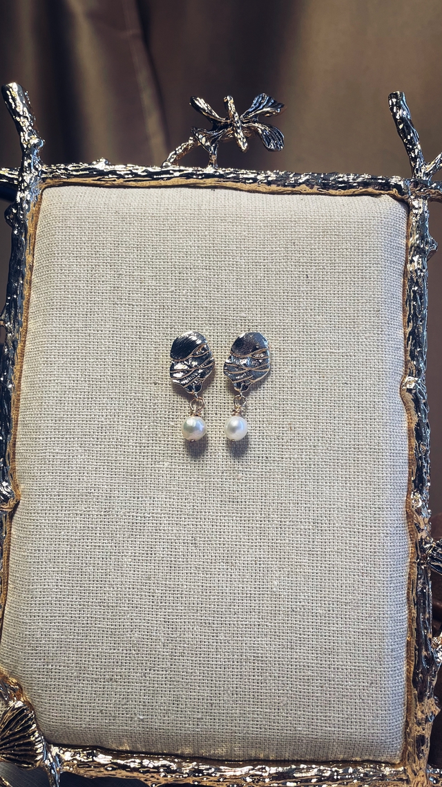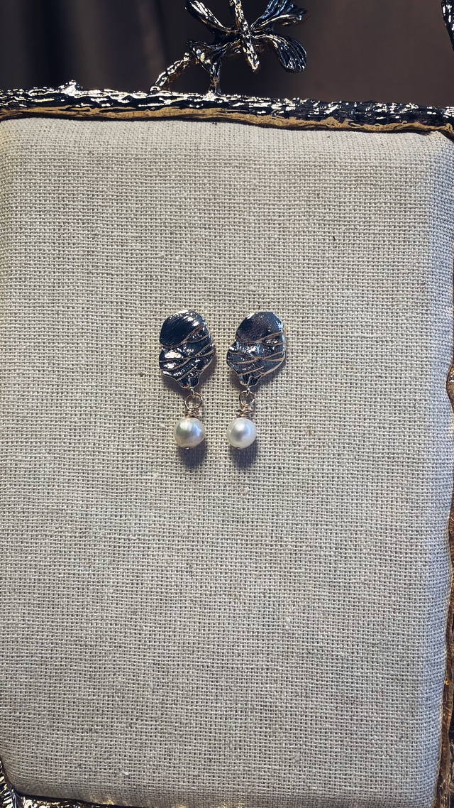 Boucles d’oreilles avec des perles de culture d’eau douce baroque, acier